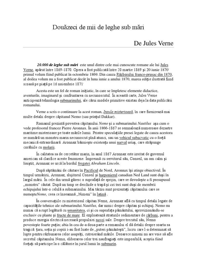 20 000 De Leghe Sub Mari Rezumatul Docx Document