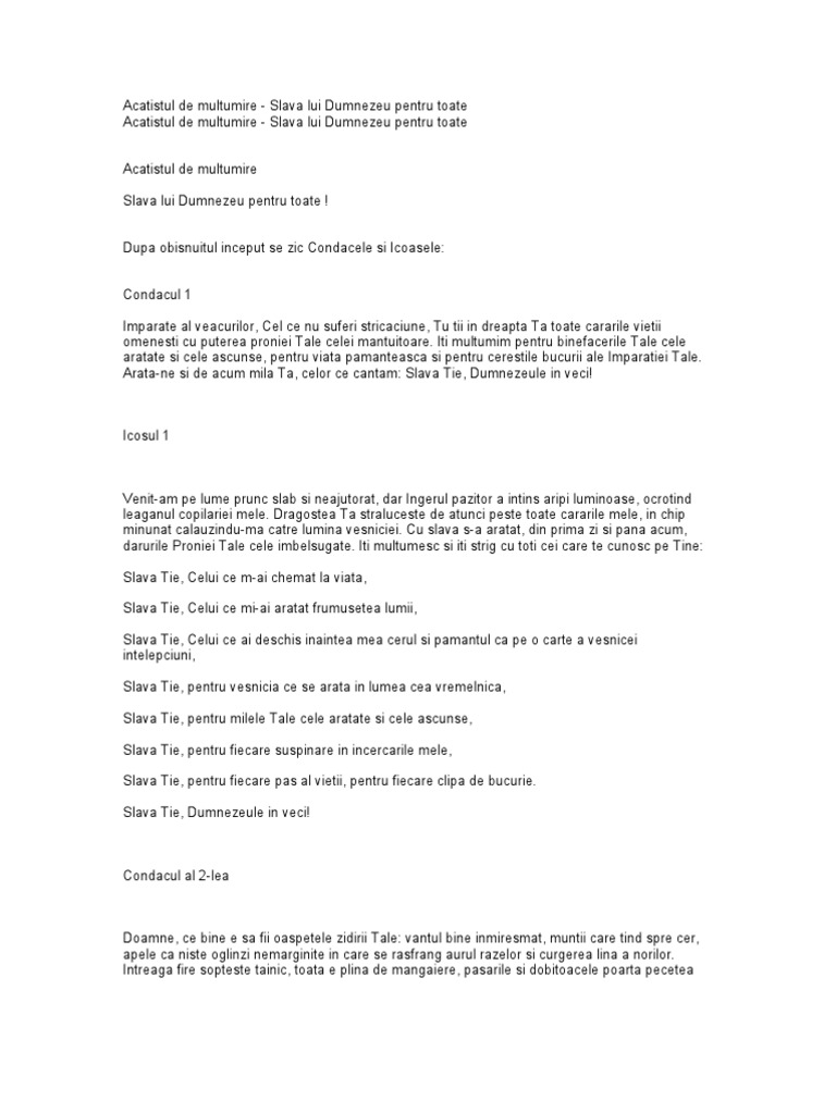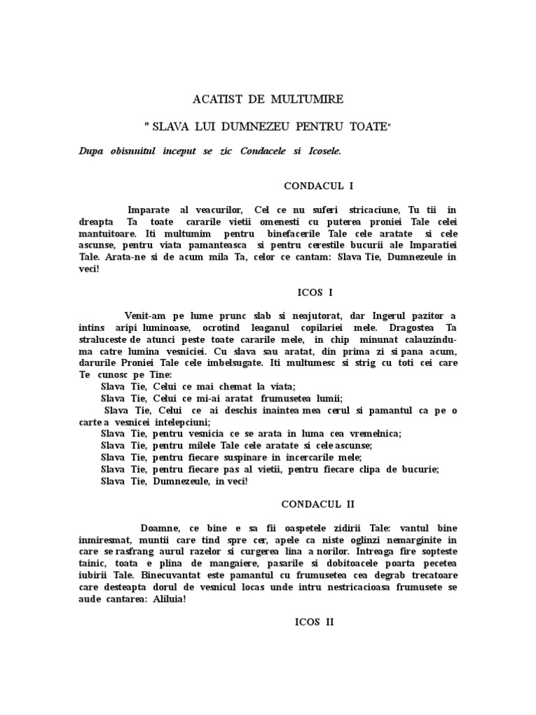 Acatistul De Mulţumire Slavă Lui Dumnezeu Pentru Toate