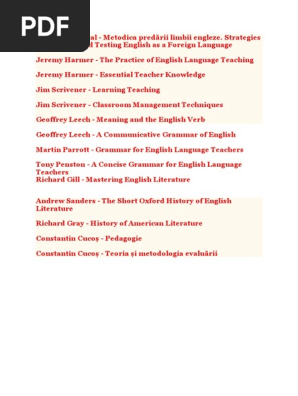 Metodica Predarii Limbii Engleze Strategies Of Teaching And Testing English As A Foreign Language De Adriana Vizental Pdf