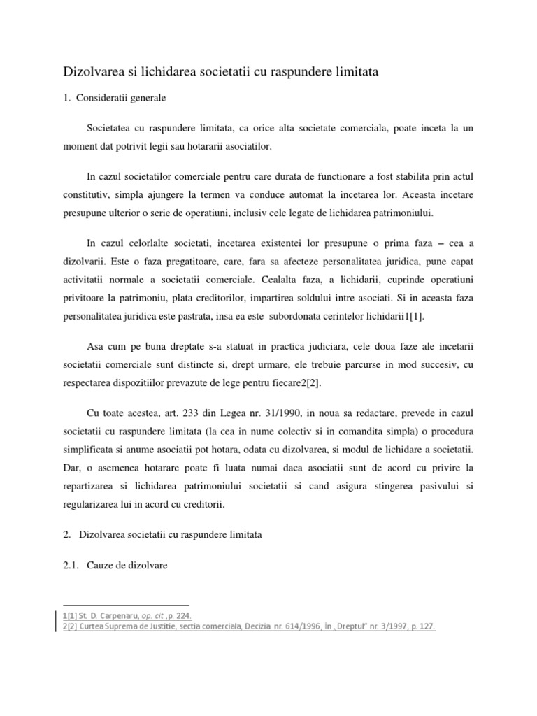 Cand se face lichidarea. Contestatie impotriva deciziei de concediere disciplinara hotararea 1798 din 07 05 2009 pronuntata de tribunalul dolj. Consultatii juridice lichidarea in cazul demisiei. Dar poate fi si cazul fericit cand societatea dispune de lichidati are achitate toate datoriile comerciale si fiscale a incasat toate creantele dar asociatul doreste sa inchida societatea deci in acest caz poate realiza chiar un profit din lichidarea societatii care se adauga la cel realizat anterior si astfel in urma partajului asociatul unic poate sa obtina un profit care bineinteles ca. Ultima zi de munca a fost pe doua decembrie cand si a facut si lichidarea.