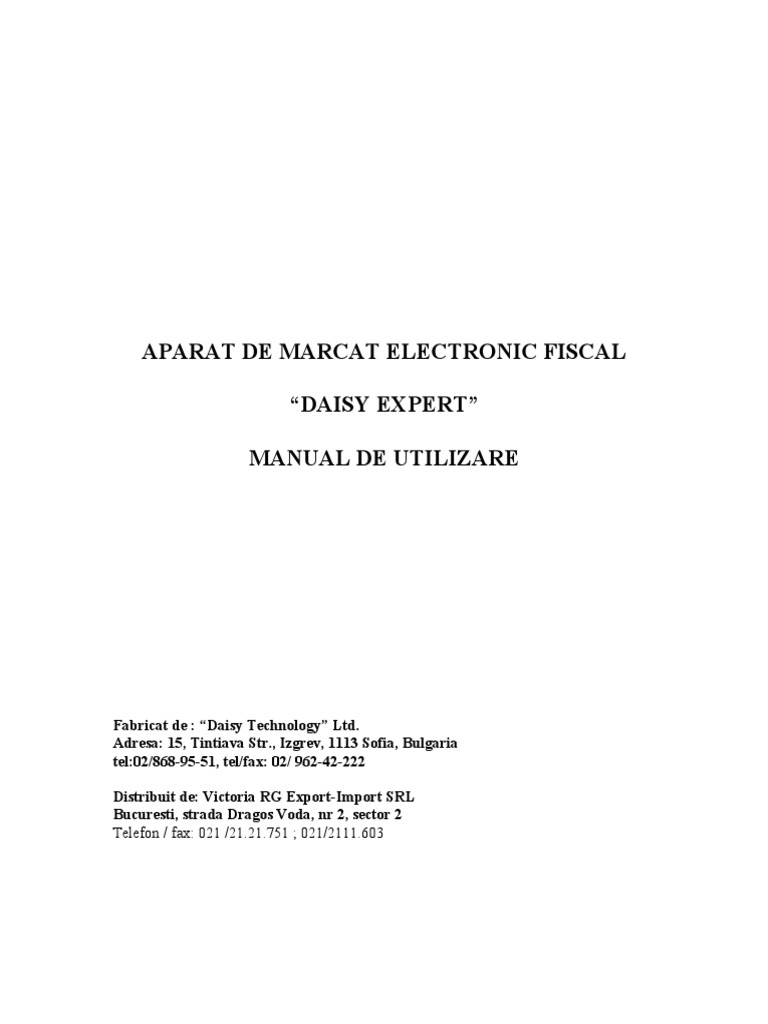 Configurare Casa De Marcat Daisy Expert Sx Manual De Utilizare Bocp