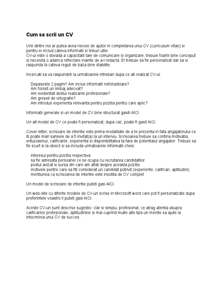 Cum Scrii Un Curriculum Vitae Cv Plus Model Bani Din Bloguri