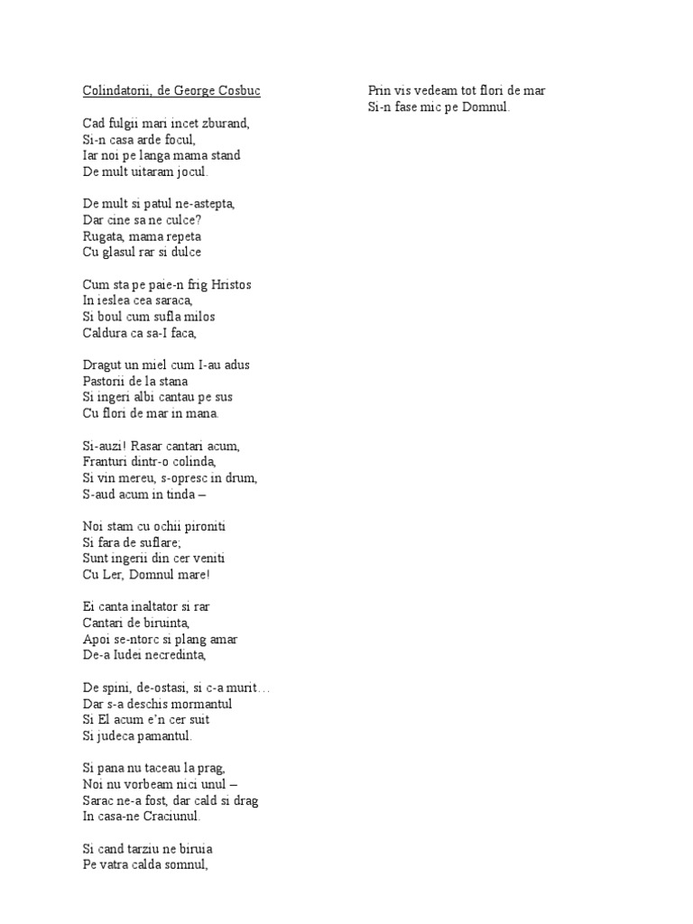 Colindatorii De George Cosbuc Anideșcoală Ro