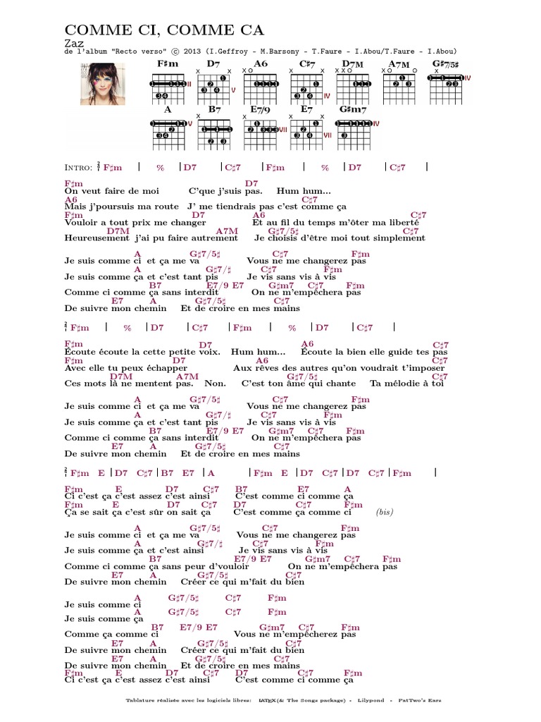 Zaz Comme Ci Comme Ca Chords Lyrics Divertissement General Mathematiques