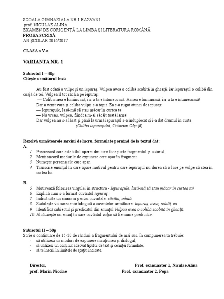 Povestiri Pe Scurt De Lecturi școlare Corigent La Limba Romană 1