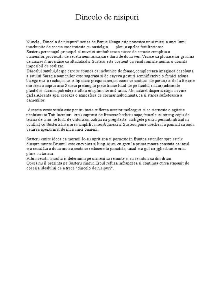 Referat Dincolo De Nisipuri De Fanus Neagu 341609 Graduo