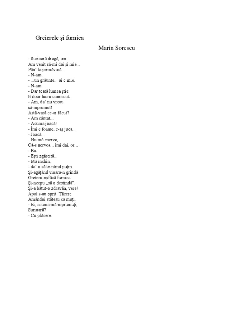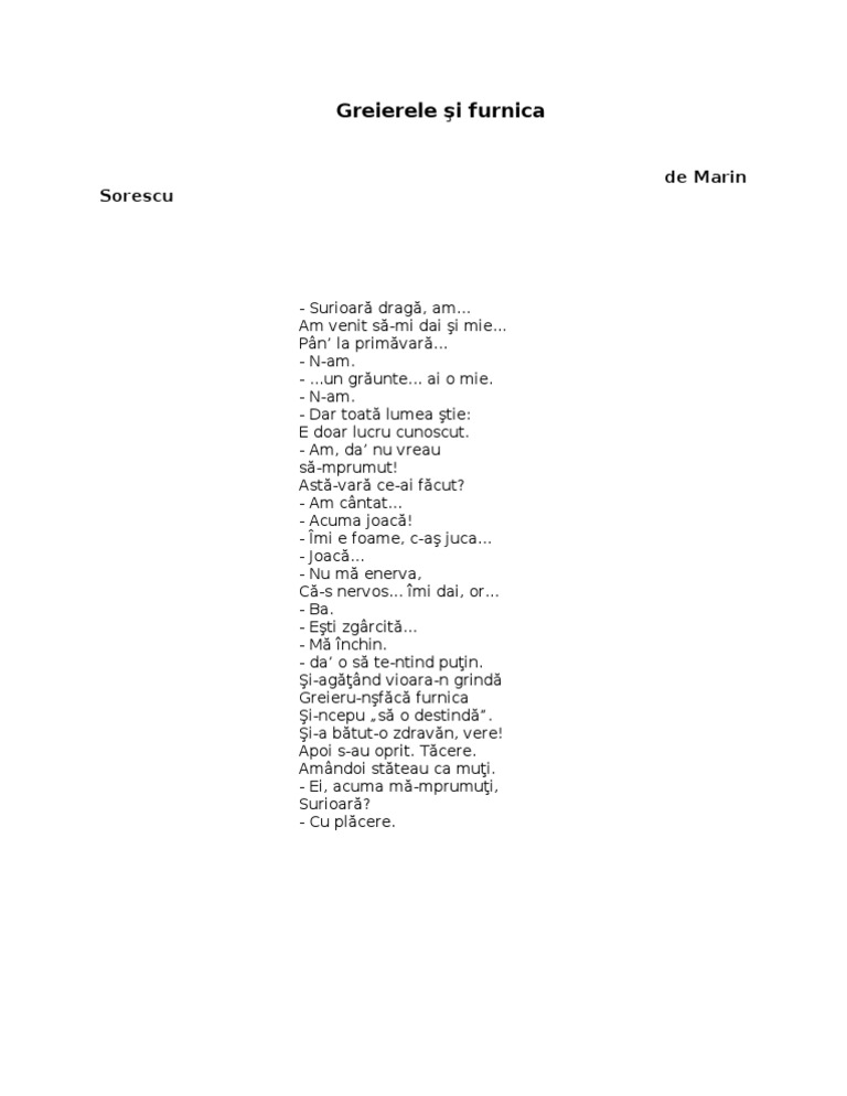 Greierele Si Furnica Marin Sorescu