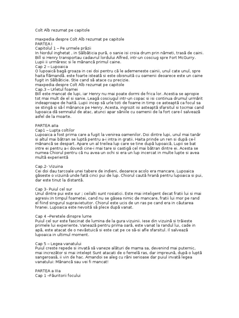 Rezumate Bune Colţ Alb De Jack London Rezumat Pdf