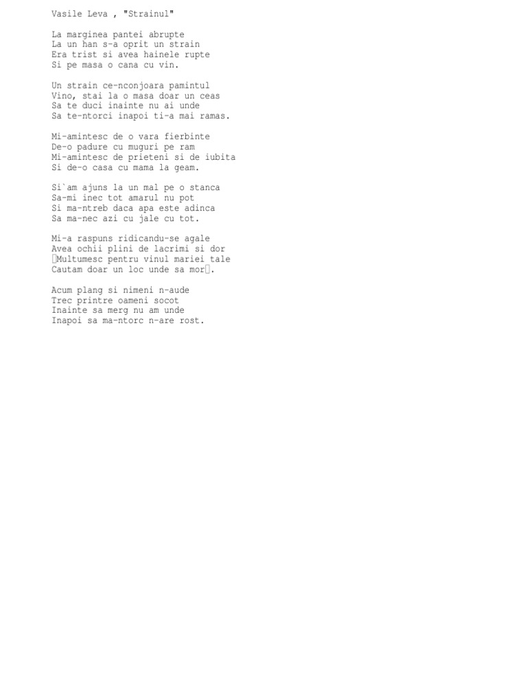 Vasile Leva Strainul Versuri Corecte