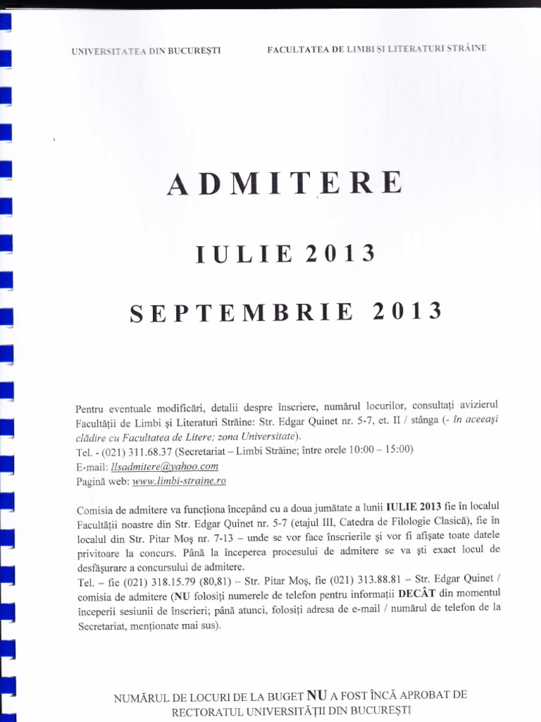 Admitere Limbi Străine 2015 Admitere Facultatea De Limbi Străine B365