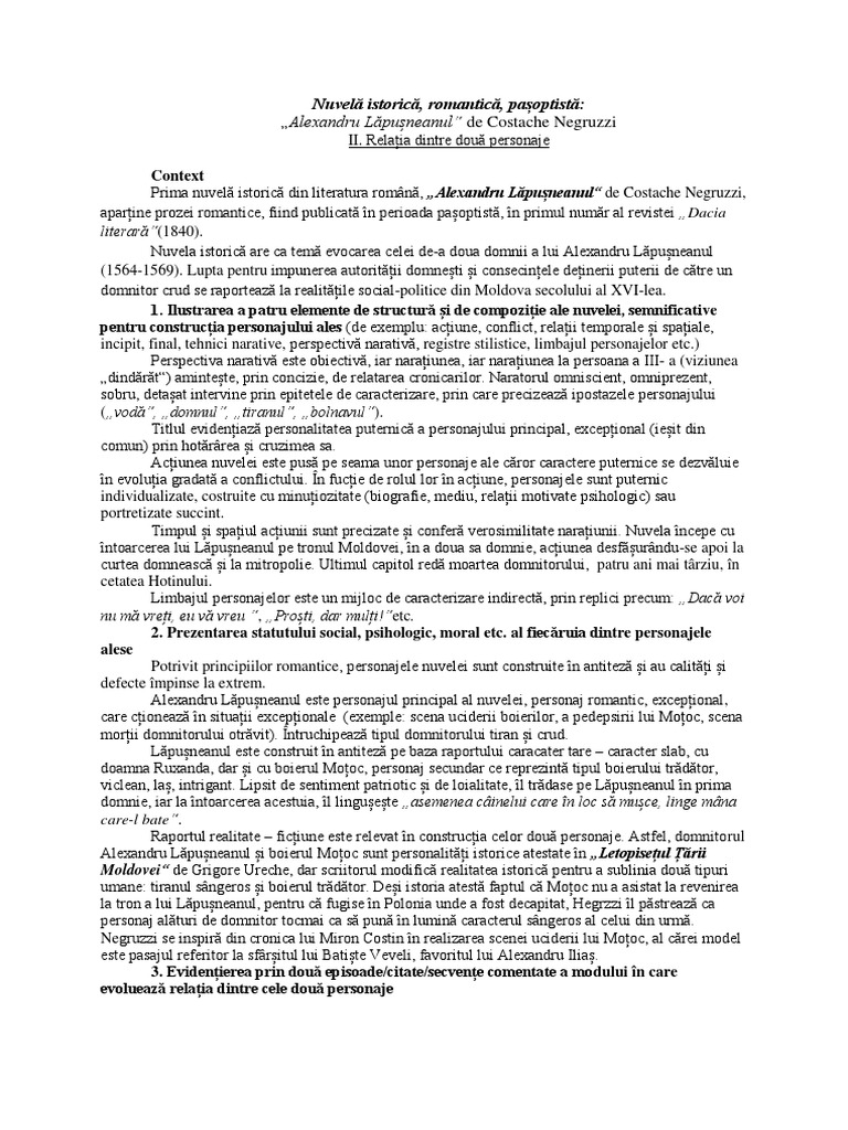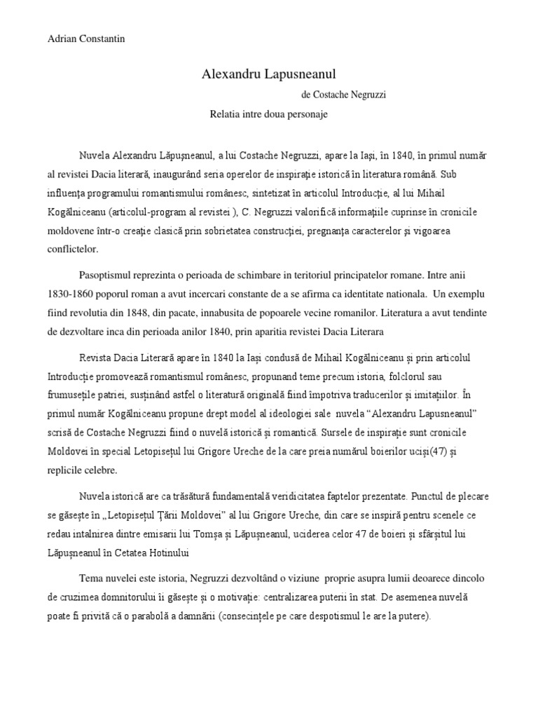 Alexandru Lapusneanu Relatia Dintre 2 Personaje Docx Document