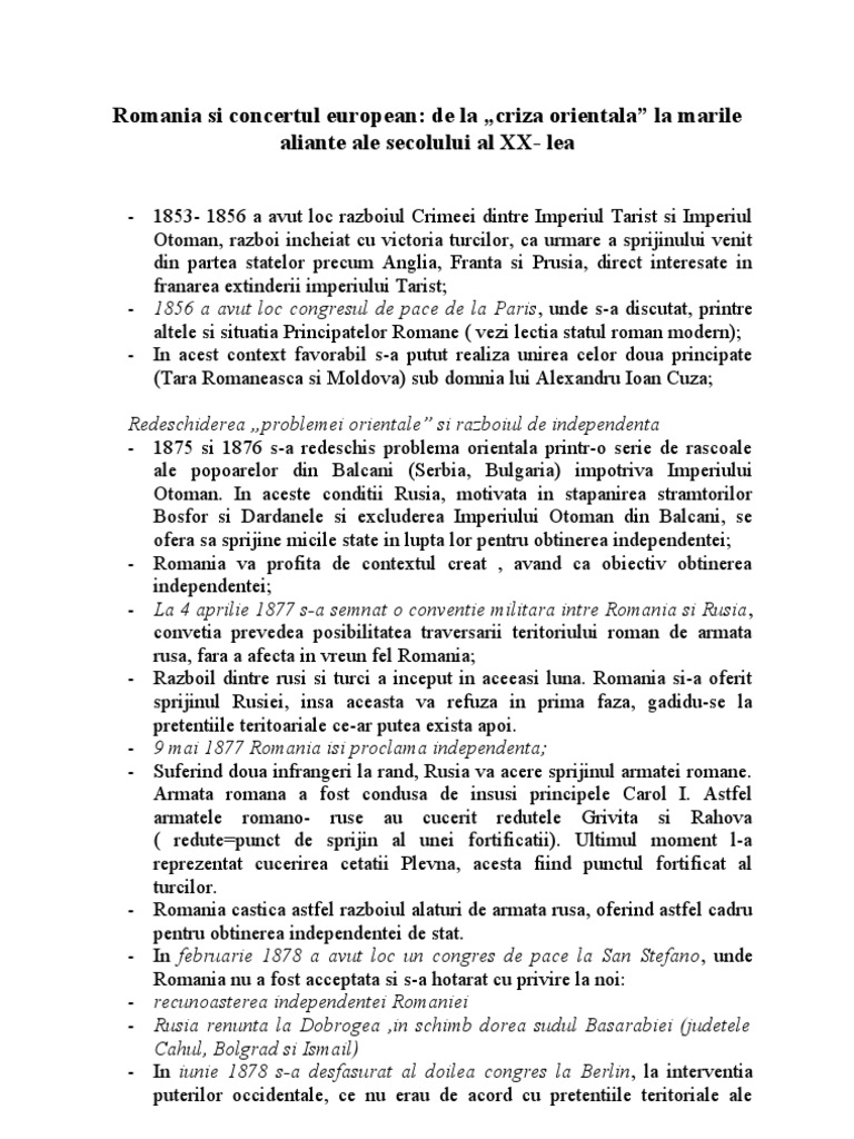 Romania Si Concertul European De La Criza Orientala La Marile Aliante Ale Secolului Xx Istorie Admitere Academia De Politie