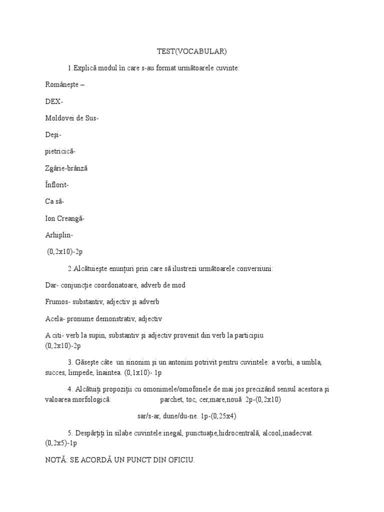 Gramatica Limbii Romane Teste Grila