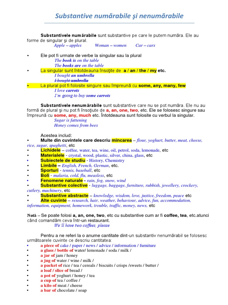 4 Substantive Numarabile Si Nenumarabile Noun Food And Drink