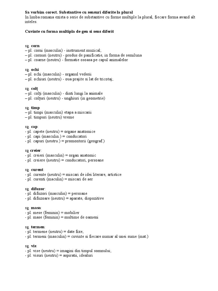 Ghid Pentru Supravietuirea Limbii Romane Sa Vorbim Corect Substantive Cu Sensuri Diferite La Plural