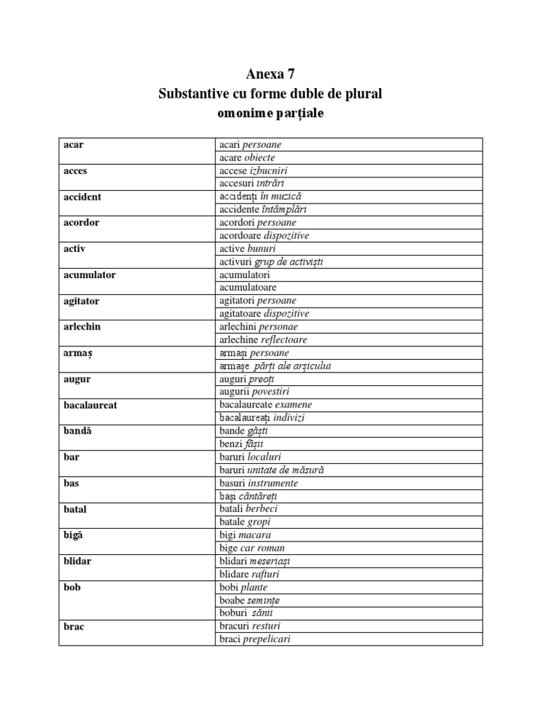 Anexa 7 Omonime Par Tiale Substantive Cu Două Forme De Plural