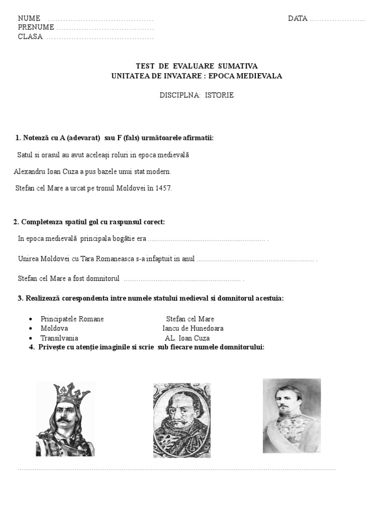 Evaluare Sumativa Istorie Clasa A Iv A Interactive Worksheet