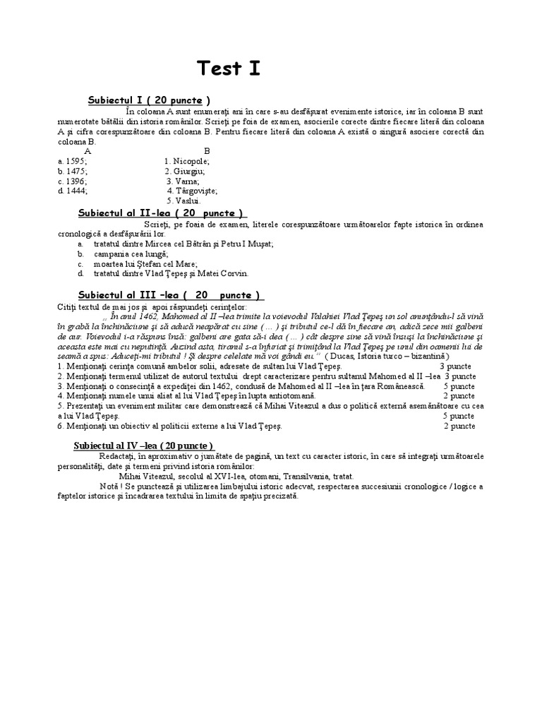 Doc Test Istorie Clasa A Ix A 1 Hritcu Cristina Academia Edu